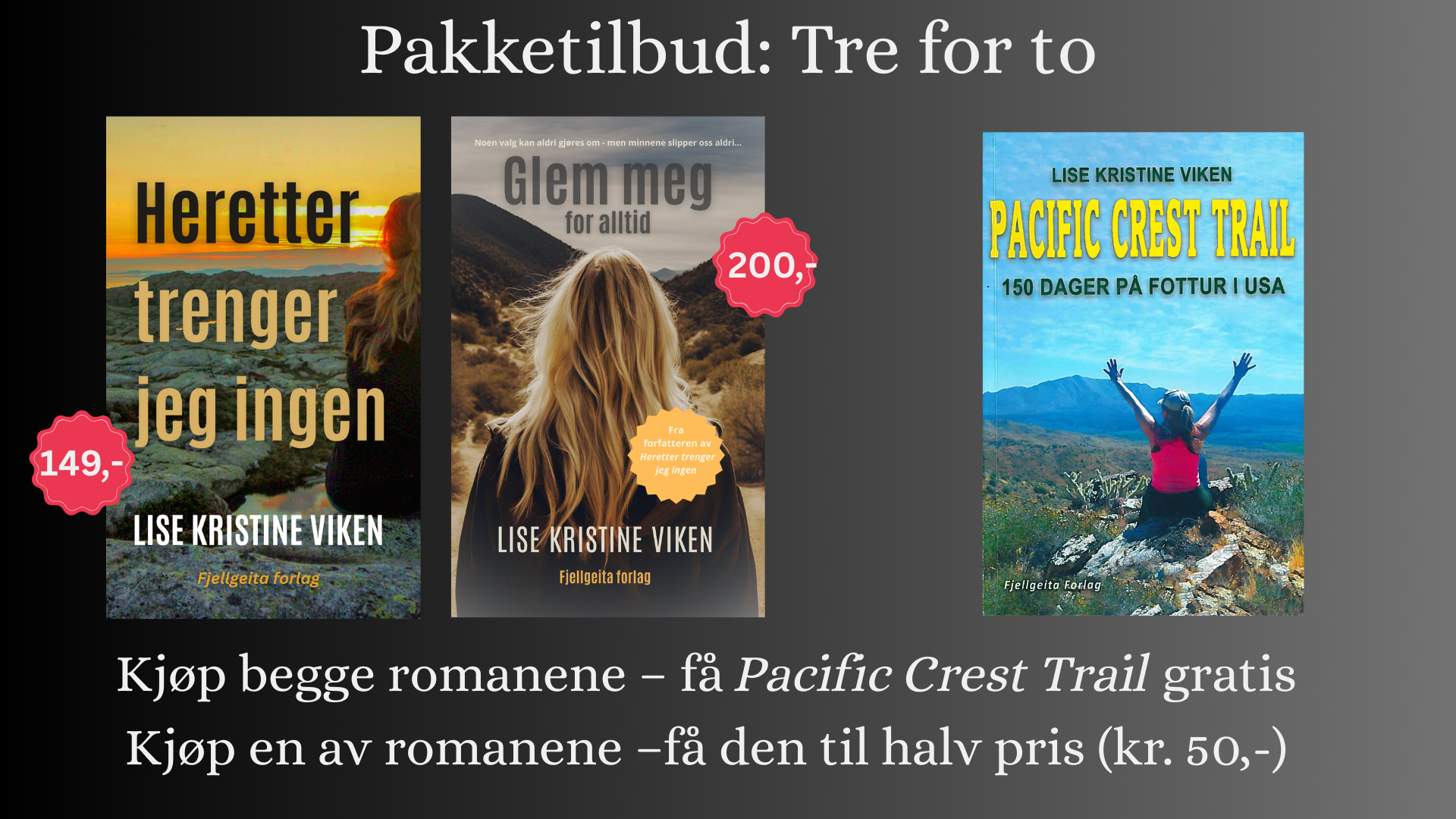 "Det er snart syv år siden jeg ble kvitt min verste venn; sigaretten. Jeg gikk i den klassiske røykesluttfellen og la på meg ganske mye. Sjokket var stort da jeg gikk på vekten og den viste 110 kilo. Jeg prøvde flere runder med kaloritelling. Noen kilo ble jeg kvitt, men det var fortsatt mange igjen. Vendepunktet ble boken «Wild» av Cheryl Strayed. Drømmen om Pacific Crest Trail ble plantet. Kunne en ung jente på 22 år dra alene på telttur i flere måneder, ja, da kunne jaggu en dobbelt så gammel kjerring klare det. Tenkte jeg."